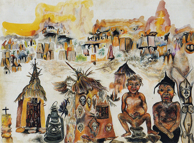 Dogon Country, Mali Drawing and Water Colors 60 x 40 cm